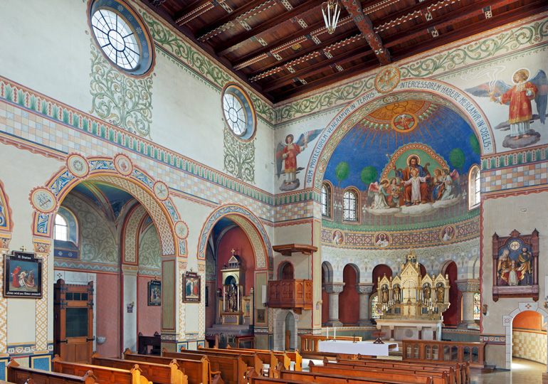 Die Klosterkirche St. Joseph wurde zwischen 1905 und 1907 nach dem Vorbild einer frühchristlichen Basilika erbaut. Der quadratische, ornamental bemalte Innenraum wird im Norden von einem Seitenschiff, im Süden von der Sakristei und einer Seitenkapelle ergänzt. Eine prächtige Apsis im Osten zeigt unter dem Symbol der Dreifaltigkeit die Hand Gottes sowie den Hl. Joseph mit dem segnenden Jesuskind. Darunter sind die vier Evangelisten abgebildet. Die Kirche vereint Stilelemente der Neuromanik, des Jugendstils und des Art déco. Sie besitzt vier Altäre und kunstvoll gefertigtes Mobiliar, überwiegend aus Nussbaumholz.